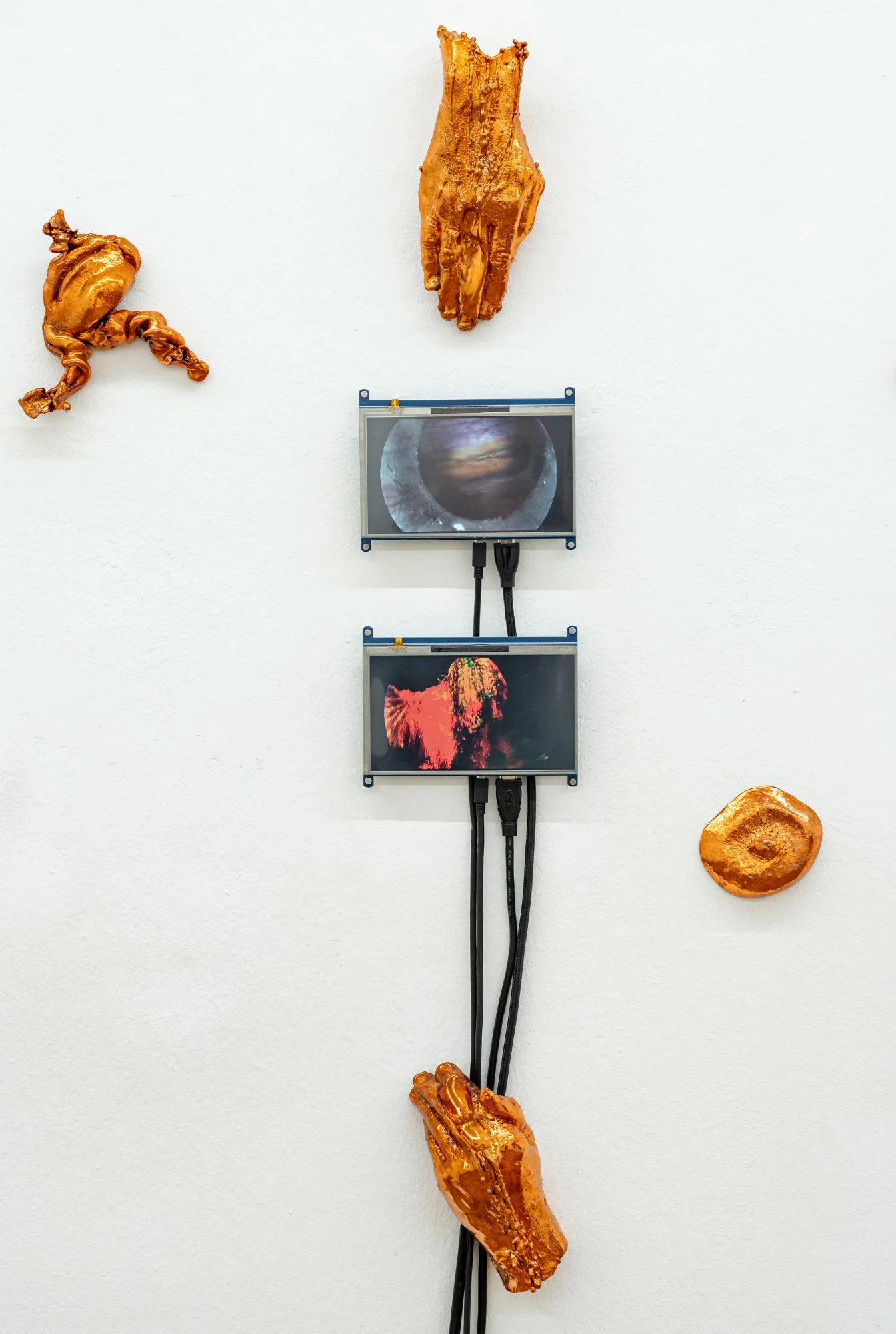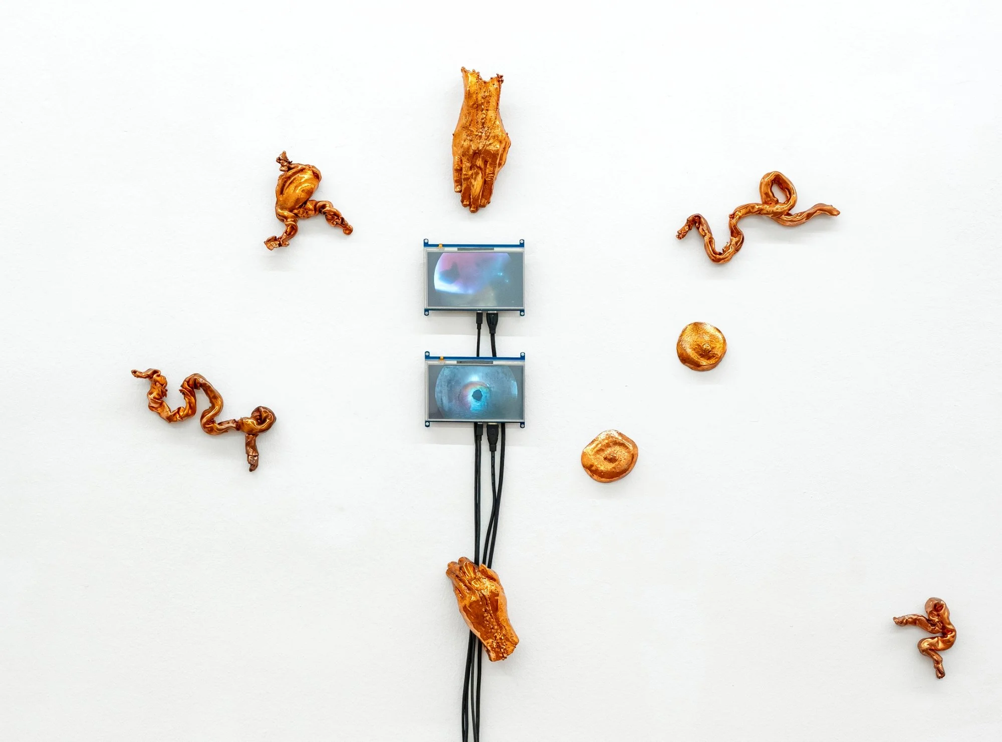 140 × 171 × 8 cm, copper, LED monitors, HD video 3′ 01″, 2024